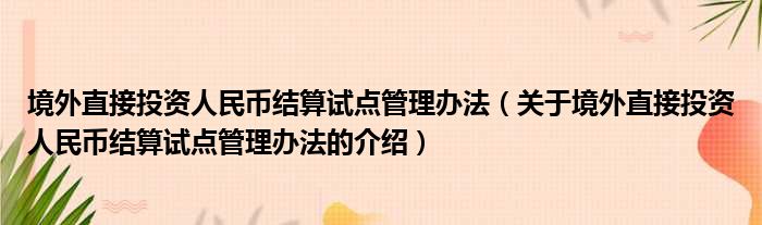 境外直接投资人民币结算试点管理办法(关于境外直接投资人民币结算试点管理办法的介绍)