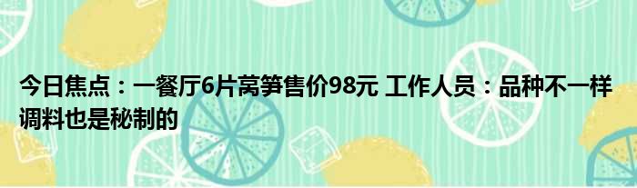 今日焦点:一餐厅6片莴笋售价98元 工作人员:品种不一样 调料也是秘制的