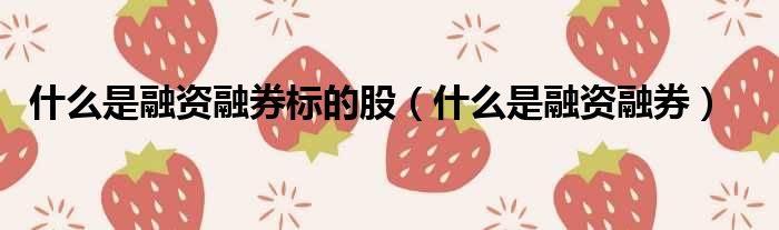 导读 大家好,小房来为大家解答以上的问题。什么是融资融券标的股,什么是融资融券这个很多人还不知道,现在让我们一起来看看吧!1、融资融券简单...