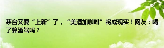 茅台又要“上新”了,“美酒加咖啡”将成现实!网友:喝了算酒驾吗?
