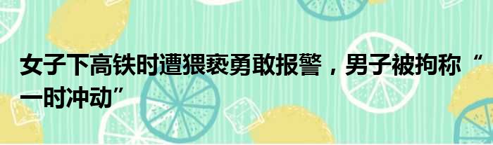 女子下高铁时遭猥亵勇敢报警,男子被拘称“一时冲动”