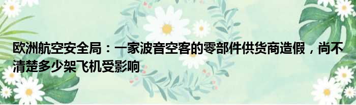 欧洲航空安全局:一家波音空客的零部件供货商造假,尚不清楚多少架飞机受影响