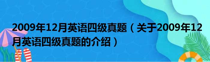 2009年12月英语四级真题(关于2009年12月英语四级真题的介绍)