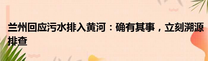 兰州回应污水排入黄河:确有其事,立刻溯源排查