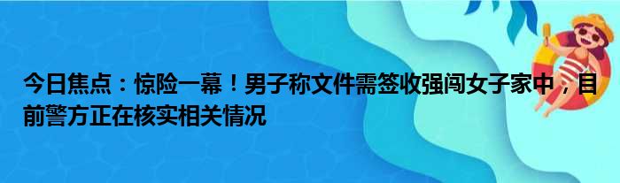今日焦点:惊险一幕!男子称文件需签收强闯女子家中,目前警方正在核实相关情况