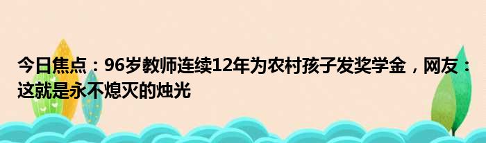 今日焦点:96岁教师连续12年为农村孩子发奖学金,网友:这就是永不熄灭的烛光