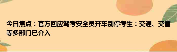 今日焦点:官方回应驾考安全员开车别停考生:交通、交管等多部门已介入