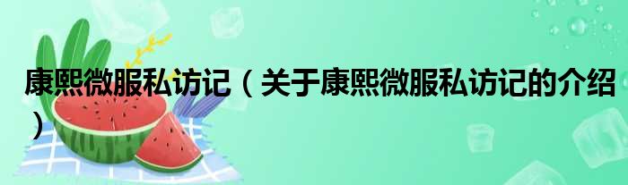 康熙微服私访记(关于康熙微服私访记的介绍)