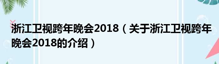 浙江卫视跨年晚会2018(关于浙江卫视跨年晚会2018的介绍)