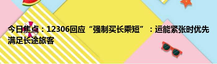 今日焦点:12306回应“强制买长乘短”:运能紧张时优先满足长途旅客