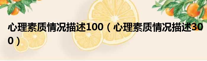 大家好,小房来为大家解答以上的问题。心理素质情况描述100,心理素质情况描述300这个很多人还不知道,现在让我们一起来看看吧!