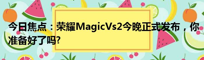 今日焦点:荣耀MagicVs2今晚正式发布,你准备好了吗?