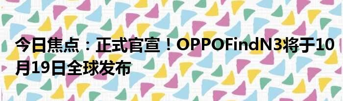 今日焦点:正式官宣!OPPOFindN3将于10月19日全球发布