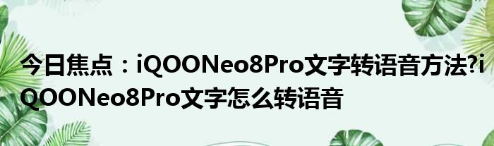 今日焦点:iQOONeo8Pro文字转语音方法?iQOONeo8Pro文字怎么转语音