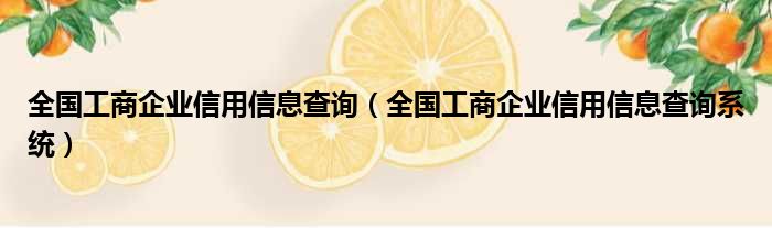 全国工商企业信用信息查询(全国工商企业信用信息查询系统)