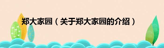 大家好,小房来为大家解答以上的问题。郑大家园,关于郑大家园的介绍很多人还不知道,现在让我们一起来看看吧!