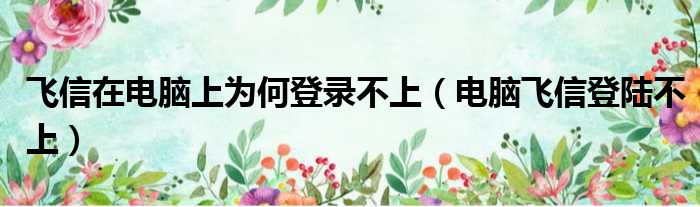 飞信在电脑上为何登录不上(电脑飞信登陆不上)