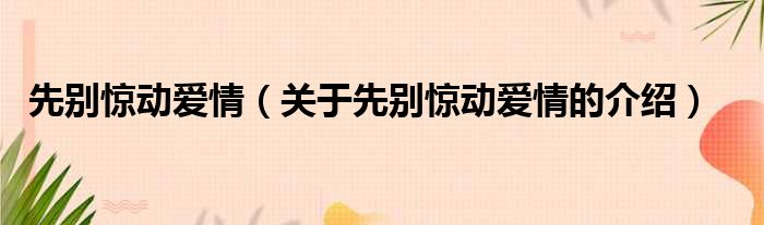 先别惊动爱情(关于先别惊动爱情的介绍)