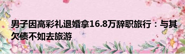 男子因高彩礼退婚拿16.8万辞职旅行:与其欠债不如去旅游