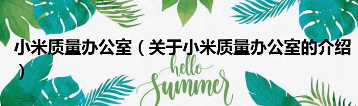 大家好,小房来为大家解答以上的问题。小米质量办公室,关于小米质量办公室的介绍很多人还不知道,现在让我们一起来看看吧!
