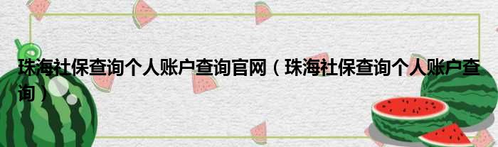 珠海社保查询个人账户查询官网(珠海社保查询个人账户查询)