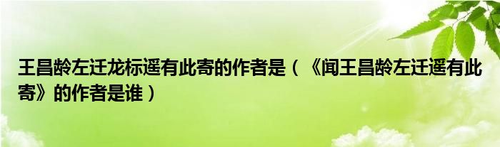 王昌龄左迁龙标遥有此寄的作者是(《闻王昌龄左迁遥有此寄》的作者是谁)