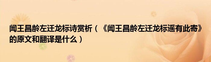 闻王昌龄左迁龙标诗赏析(《闻王昌龄左迁龙标遥有此寄》的原文和翻译是什么)