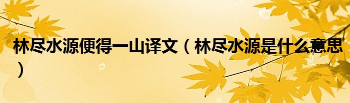 导读 大家好,田田为了大家解答以上林尽水源便得一山译文,林尽水源是什么意思的问题,也是到网上收集了关与林尽水源便得一山译文,林尽水源是什
