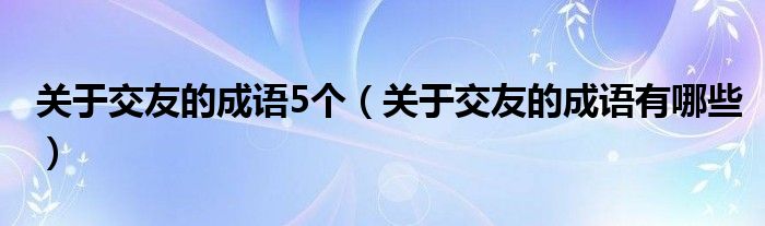 导读 大家好,田田为了大家解答以上关于交友的成语5个,关于交友的成语有哪些的问题,也是到网上收集了关与关于交友的成语5个,关于交友的成语有