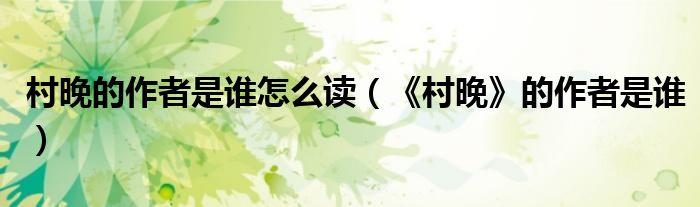 村晚的作者是谁怎么读(《村晚》的作者是谁)