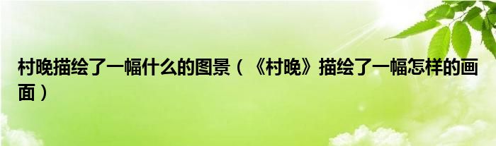 村晚描绘了一幅什么的图景(《村晚》描绘了一幅怎样的画面)