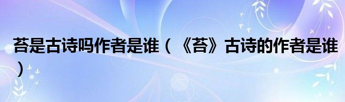 苔是古诗吗作者是谁(《苔》古诗的作者是谁)