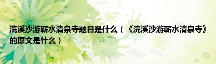 浣溪沙游蕲水清泉寺题目是什么(《浣溪沙游蕲水清泉寺》的原文是什么)