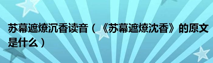 苏幕遮燎沉香读音(《苏幕遮燎沈香》的原文是什么)