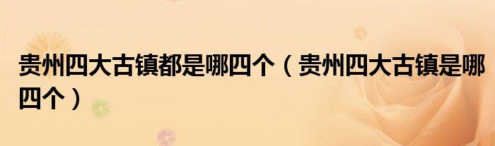 贵州四大古镇都是哪四个(贵州四大古镇是哪四个)