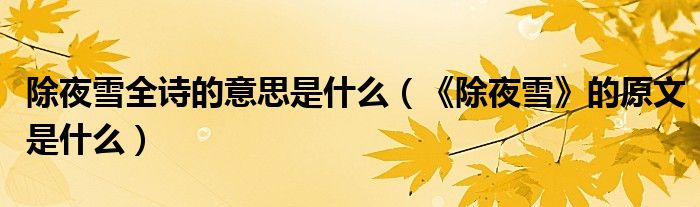 除夜雪全诗的意思是什么(《除夜雪》的原文是什么)