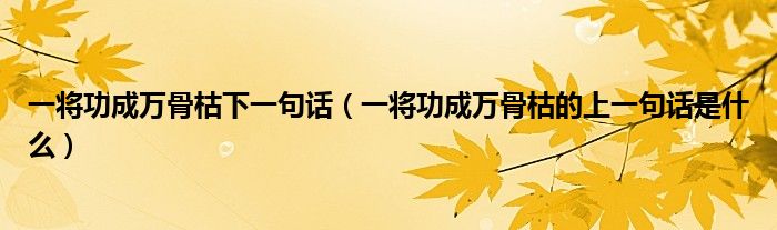 一将功成万骨枯下一句话(一将功成万骨枯的上一句话是什么)