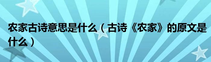 农家古诗意思是什么(古诗《农家》的原文是什么)