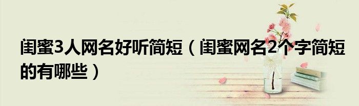 闺蜜3人网名好听简短(闺蜜网名2个字简短的有哪些)