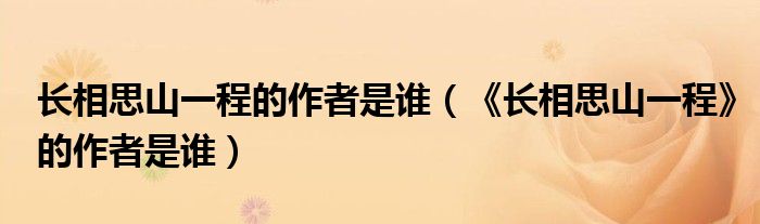 长相思山一程的作者是谁(《长相思山一程》的作者是谁)