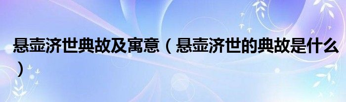 悬壶济世典故及寓意(悬壶济世的典故是什么)