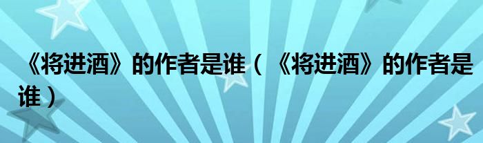 《将进酒》的作者是谁(《将进酒》的作者是谁)