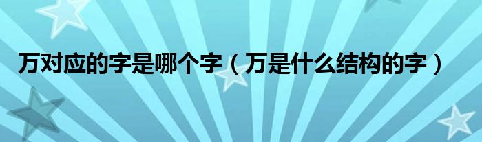 导读 大家好,田田为了大家解答以上万对应的字是哪个字,万是什么结构的字的问题,也是到网上收集了关与万对应的字是哪个字,万是什么结构的字的