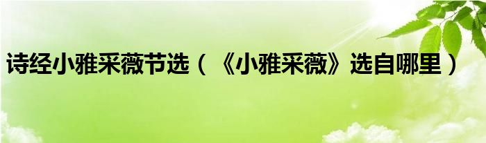 1、 《小雅采薇》选在哪里?《小雅采薇》是中国古代现实主义诗歌之一《诗经》。