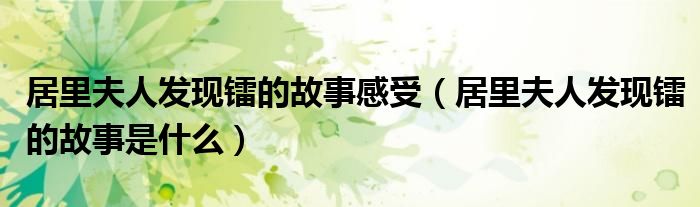 居里夫人发现镭的故事感受(居里夫人发现镭的故事是什么)