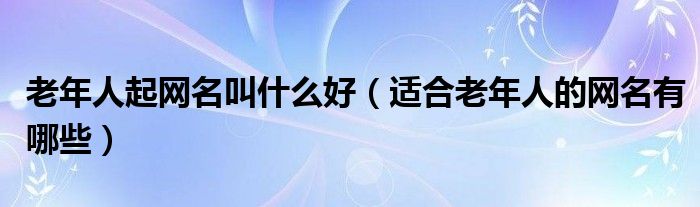 1、 适合老年人的网名有哪些人老了,贤惠了,蓝梅人,生活幸福了,花开花落无声,笑靥如花,风中有光,年中有水,简单朴素,生活如茶。