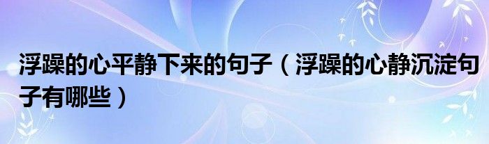 浮躁的心平静下来的句子(浮躁的心静沉淀句子有哪些)
