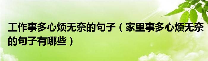 工作事多心烦无奈的句子(家里事多心烦无奈的句子有哪些)