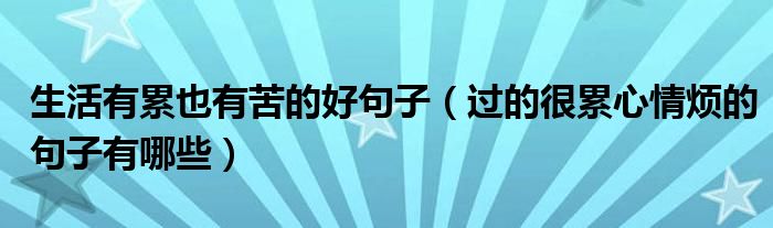 生活有累也有苦的好句子(过的很累心情烦的句子有哪些)