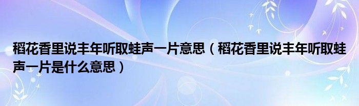 稻花香里说丰年听取蛙声一片意思(稻花香里说丰年听取蛙声一片是什么意思)